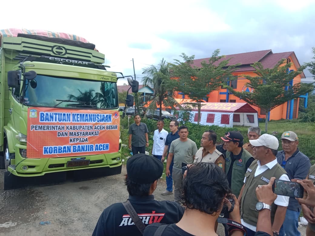 Bantuan tersebut dibawa menggunakan tronton dan truk berbagai ukuran, dilepaskan oleh Bupati Aceh Besar Muharram Idris di Posko Bantuan BPBD Aceh Besar, Sibreh, Kecamatan Sukamakmur, Selasa (09/12/2025).