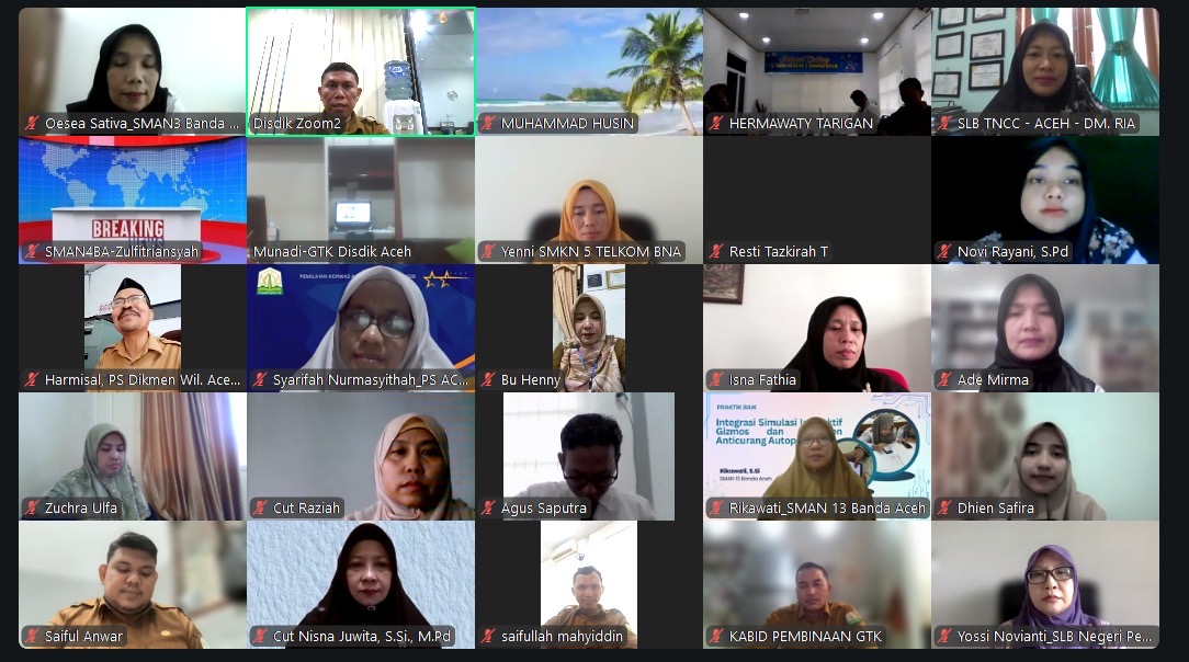 Pembukaan dilakukan secara daring melalui platform Zoom Meeting oleh Kepala Bidang GTK Dinas Pendidikan Aceh, Junaidi, SST., M.Pd, dan diikuti oleh para guru serta tenaga kependidikan berprestasi dari berbagai jenjang pendidikan di Kota Banda Aceh.
