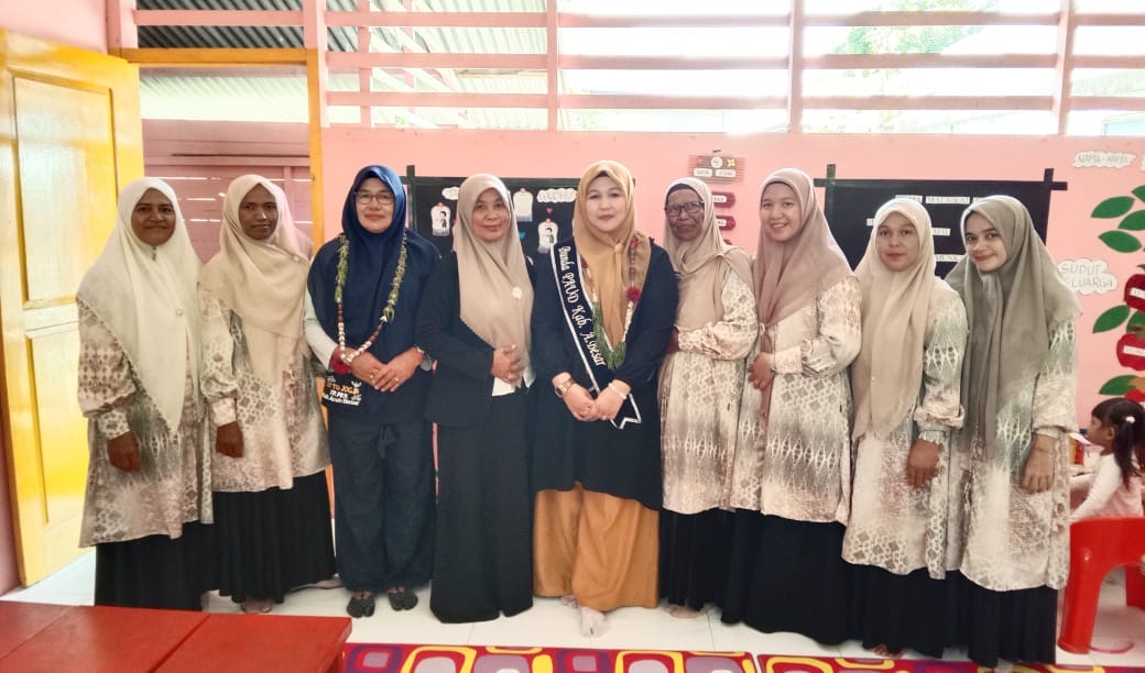 BERITA RAKYAT ACEB | Aceh Besar –  Bunda Pendidikan Anak Usia Dini (PAUD) Kabupaten Aceh Besar, Hj Rita Mayasari setelah berkunjung ke Sekola PAUD Pembina Negeri Lhoknga, juga menyambangi PAUD Zahratul Quray gampong Menasah Mesjid, kemukiman Lamlhom Kecamatan Lhoknga Aceh Besar, Sabtu, 30/8/2025.