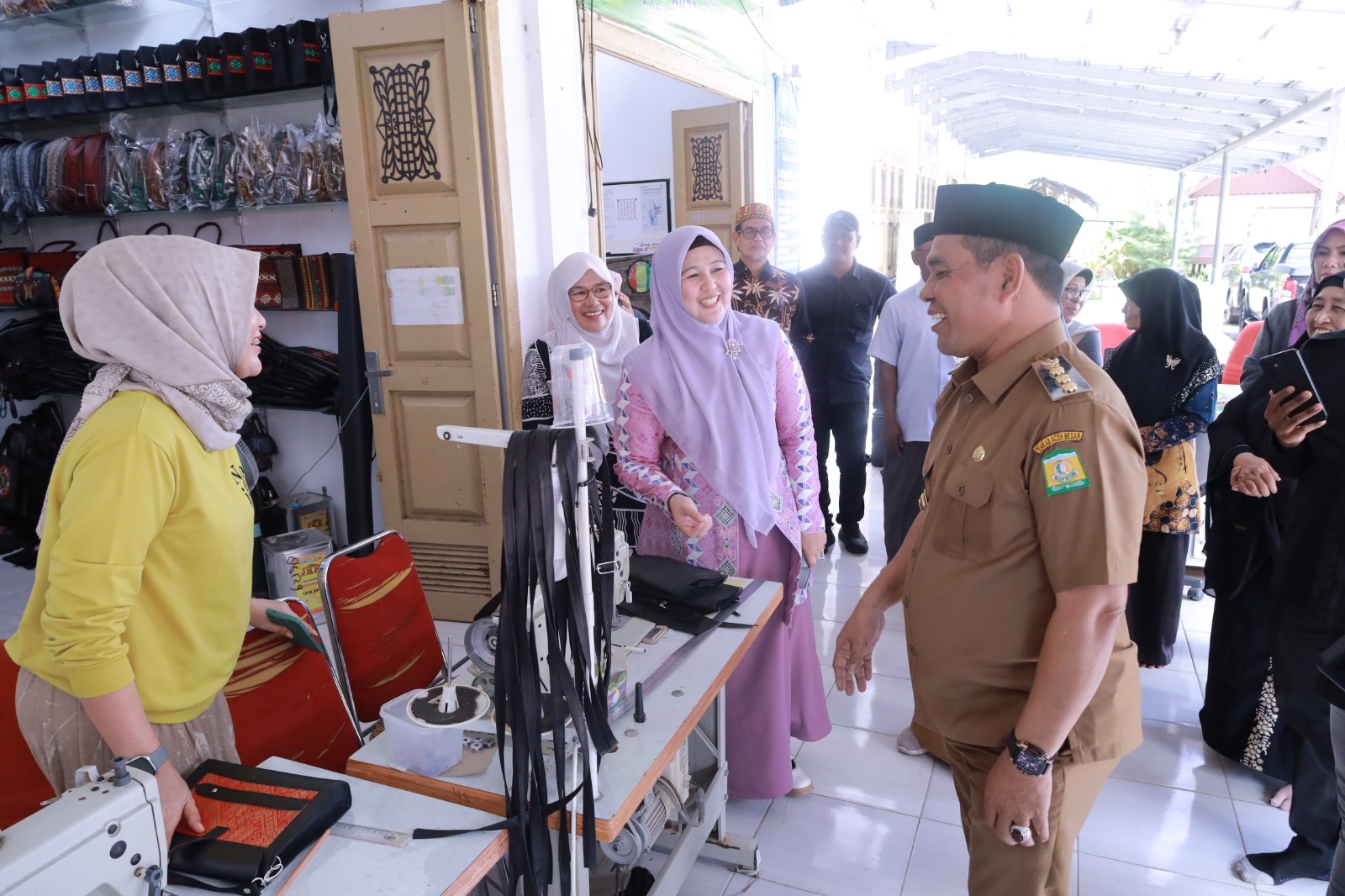Pada peninjauan tersebut, H. Muharram Idris dan rombongan dipandu oleh Sekretaris Dekranasda Aceh Besar Enni Zusniati untuk melihat-lihat berbagai hasil karya dari UMKM Aceh Besar.