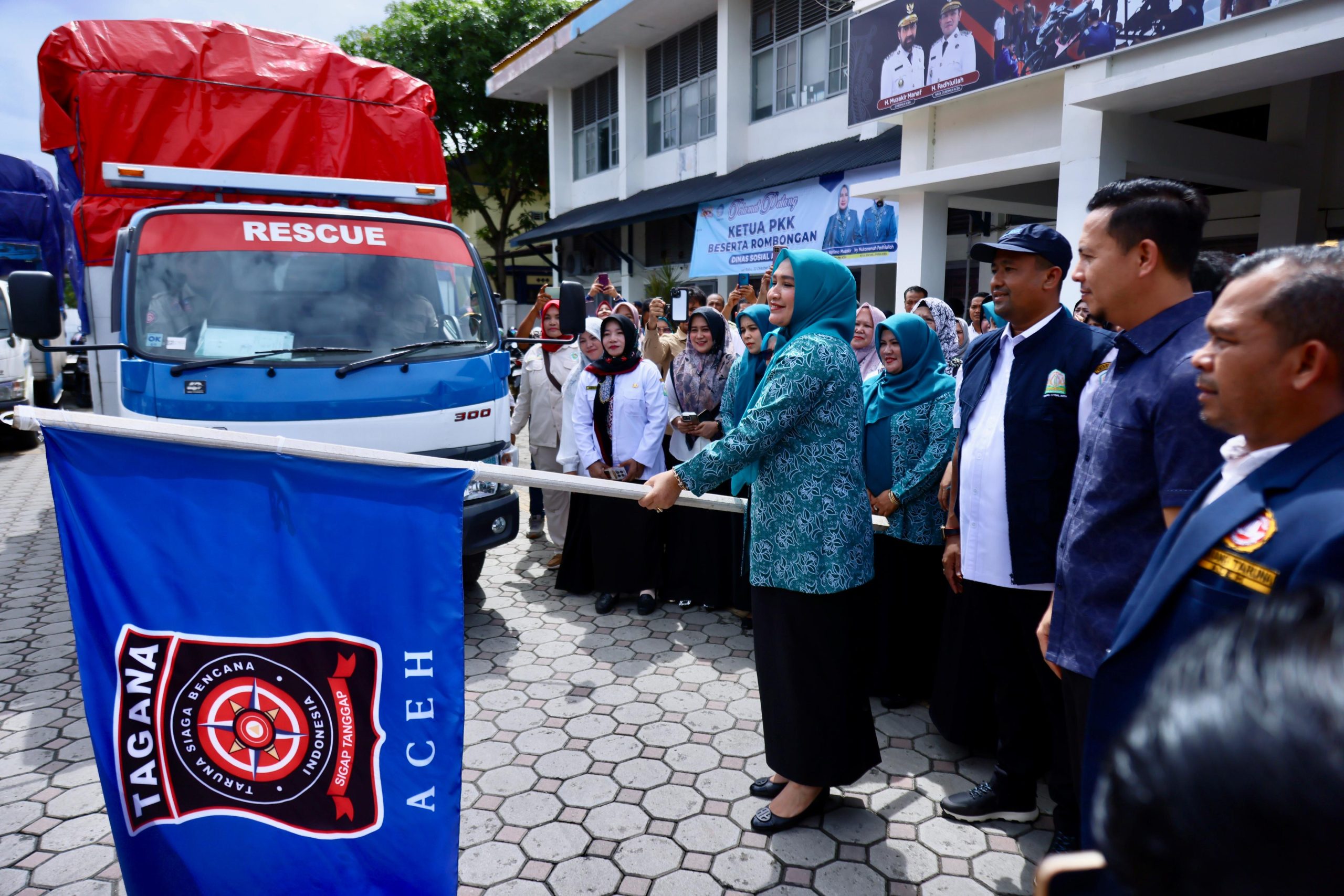Prosesi pelepasan turut dihadiri oleh Persatuan Istri Anggota (PIA) DPR Aceh, anggota DPRA ini berlangsung di halaman Kantor Dinas Sosial Aceh, Rabu (22/10/2025).