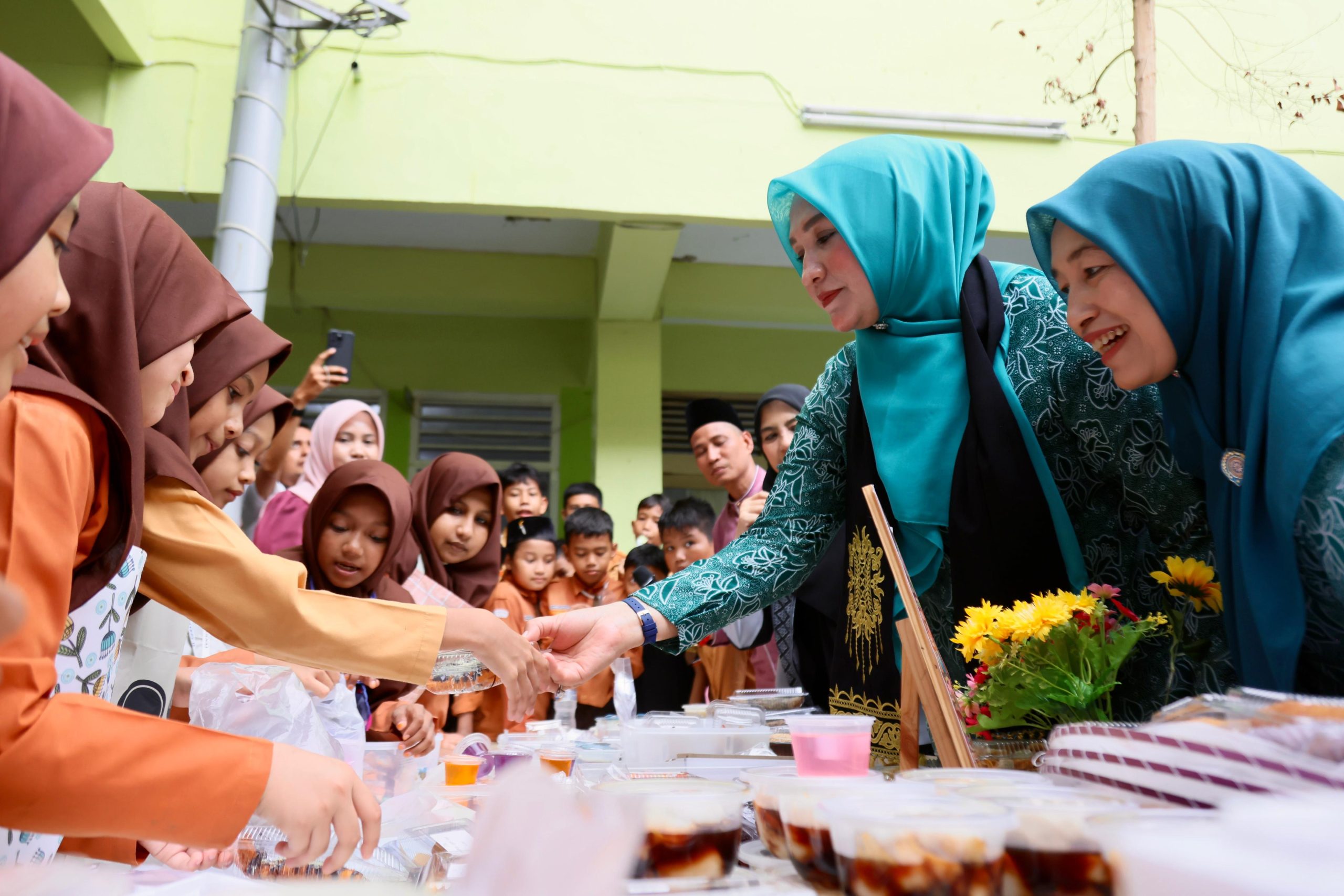 Kunjungan Bunda Guru Aceh ke MIN Model bertepatan dengan Market Day sekolah tersebut. Kesempatan ini dimanfaatkan Kak Na dengan memborong jajanan sehat yang tersedia di sejumlah gerai. Seluruh jajanan sehat hari ini dijajakan oleh siswa kelas 4 MIN Model Banda Aceh.