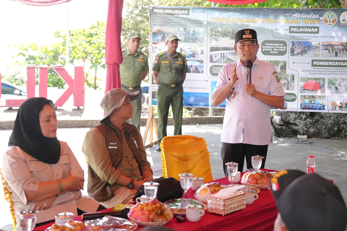 Sementara itu, Pj Sekda Kota Sabang, Irfani, mendampingi Menteri Kehutanan RI meninjau lokasi Perhutanan Sosial Hutan Kemasyarakatan (HKM) di Gunung Berapi Jaboi. Kunjungan dilanjutkan dengan diskusi bersama petani perhutanan sosial mengenai pemanfaatan hutan yang berkelanjutan.