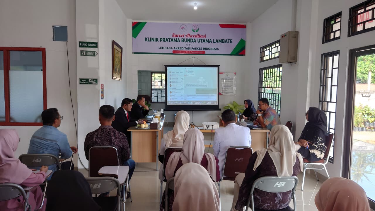 BERITA RAKYAT ACEH I Aceh Besar – Klinik Pratama Bunda Utama Lambate resmi melaksanakan proses akreditasi klinik sebagai bagian dari komitmen dalam meningkatkan mutu pelayanan kesehatan dan keselamatan pasien. Kegiatan akreditasi ini dilakukan oleh Tim Surveior dari LAFI (Lembaga Akreditasi Faskes Indonesia) dan berlangsung di lokasi klinik yang terletak di wilayah Lambate, Kecamatan Darul Kamal, Kabupaten Aceh Besar.(11/2/26)