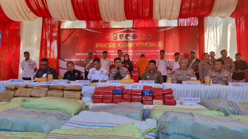 “Ini adalah hasil kerja keras dan kolaborasi yang solid antara Ditresnarkoba Polda Aceh, Badan Narkotika Nasional Provinsi (BNNP) Aceh, Bea Cukai, serta jajaran kepolisian di berbagai daerah seperti Polresta Banda Aceh, Polres Aceh Timur, Polres Gayo Lues, dan Polres Sabang,” ungkap Irjen Pol Marzuki Ali Basyah.
