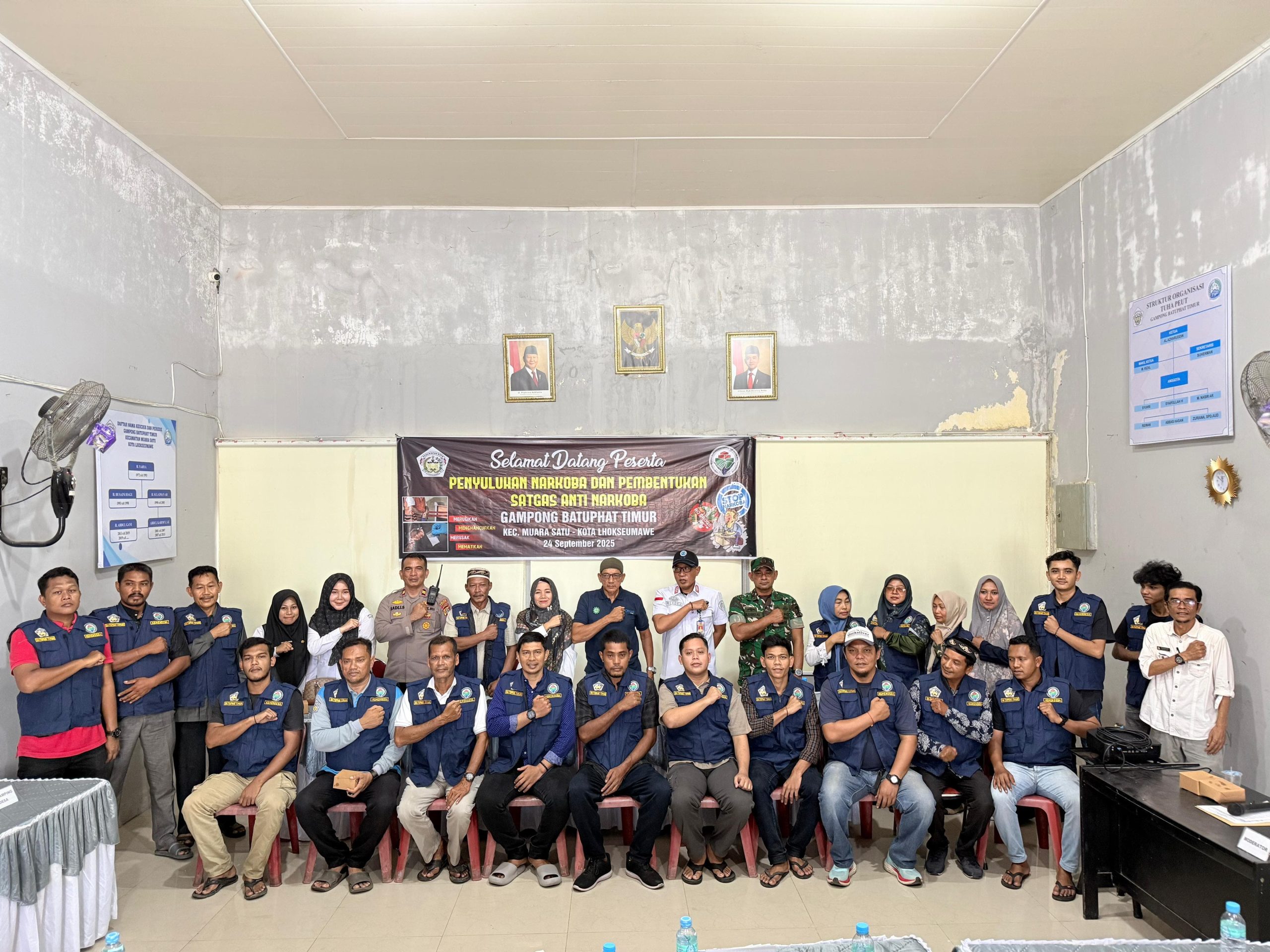 BERITA RAKYAT ACEH | Lhokseumawe – Puluhan pemuda Gampong Batuphat Timur, Kecamatan Muara Satu, Kota Lhokseumawe mendeklarasikan diri untuk memerangi penyalahgunaan narkoba dengan membentuk Satuan Tugas (Satgas) Anti Narkoba sekaligus menggelar penyuluhan di Kantor Keuchik Batuphat Timur, pada Rabu (24/9/2025).