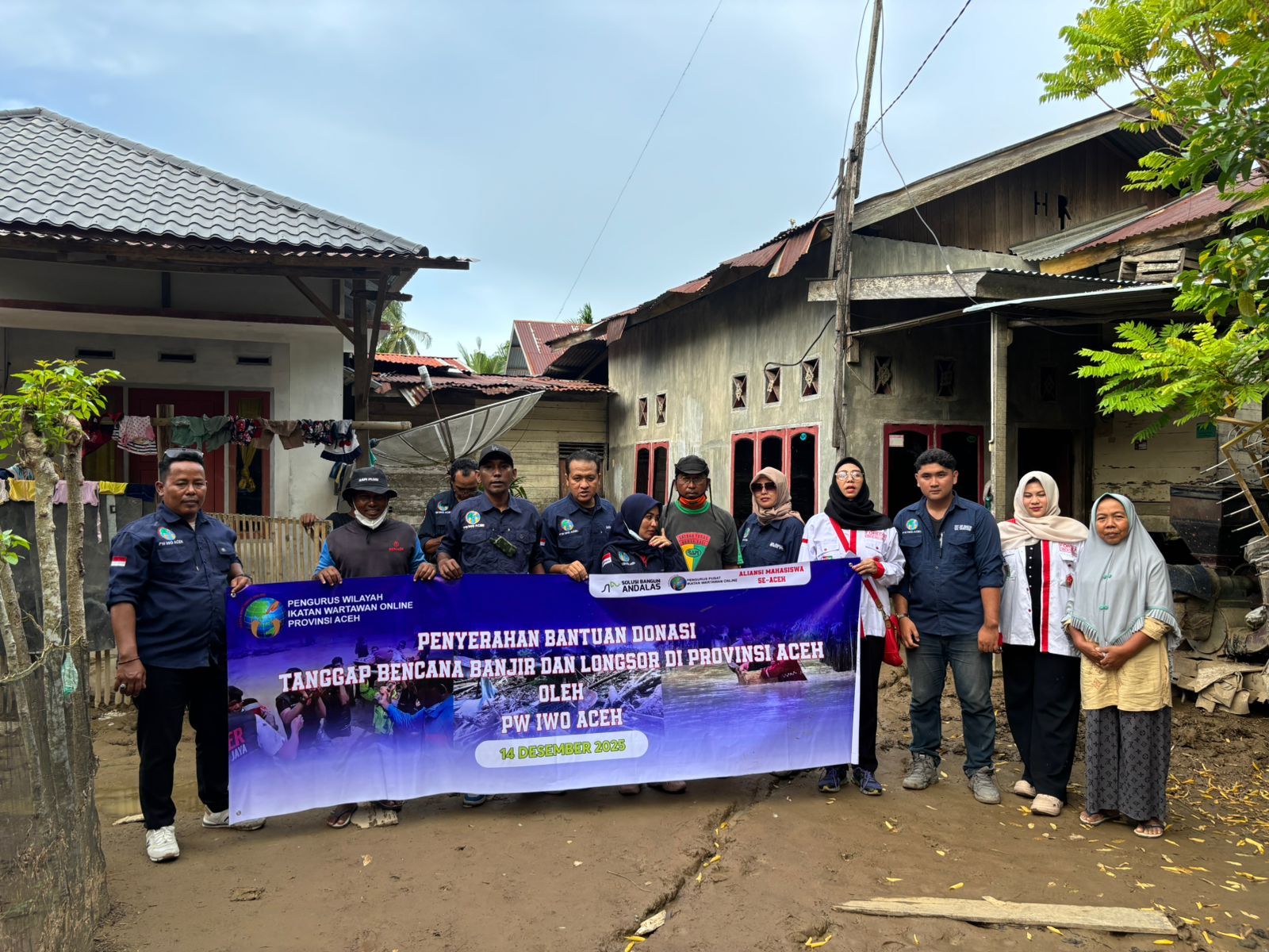 BERITA RAKYAT ACEH I Pidie Jaya – Kepedulian terhadap sesama kembali ditunjukkan Pengurus Wilayah Ikatan Wartawan Online (PW IWO) Provinsi Aceh. Melalui aksi kemanusiaan, PW IWO Aceh menyalurkan bantuan donasi kepada masyarakat terdampak banjir dan longsor di Kabupaten Pidie Jaya, Minggu (14/12/2025).