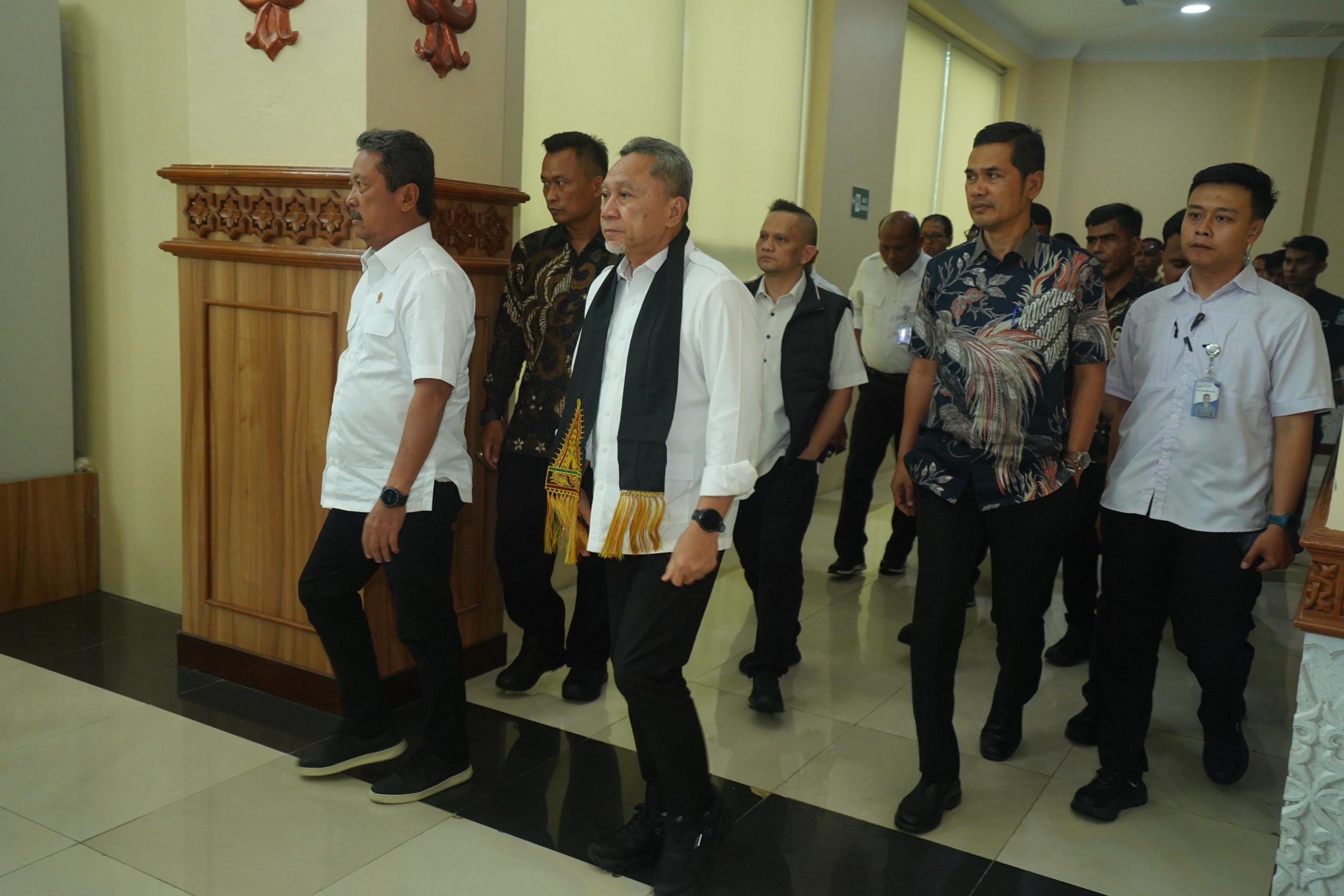 BERITA RAKYAT ACEH | Aceh Besar — Sekretaris Daerah (Sekda) Aceh, M. Nasir, menyambut kedatangan Menteri Koordinator Bidang Pangan RI Zulkifli Hasan bersama Menteri Perdagangan RI Budi Santoso dan Menteri Kelautan dan Perikanan RI Sakti Wahyu Trenggono di Bandara Internasional Sultan Iskandar Muda (SIM), Aceh Besar, Kamis (8/1/2026).