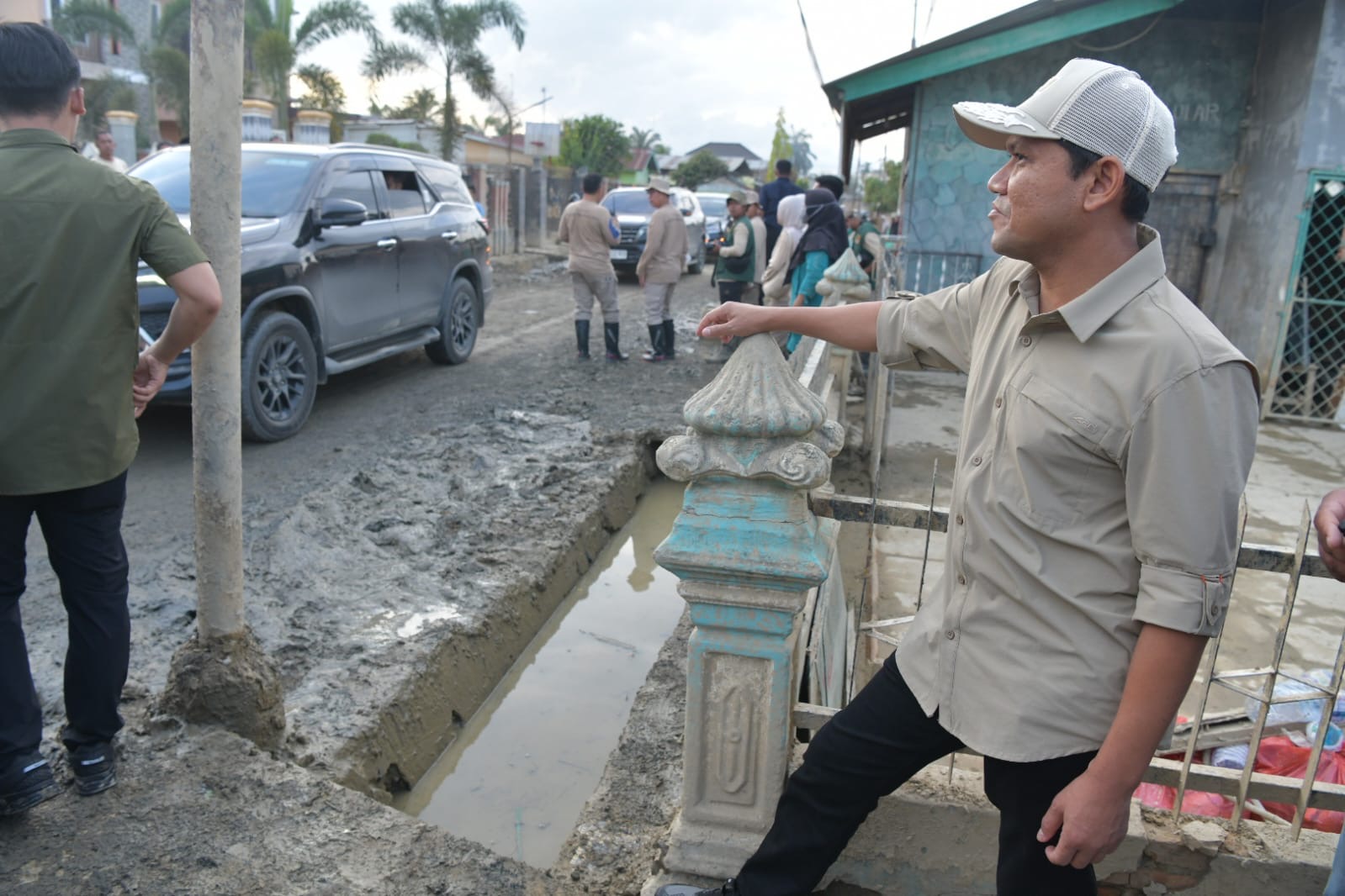 Mendagri dan Wagub Aceh meninjau langsung pembersihan lingkungan permukiman terdampak di Desa Bundar, Kecamatan Karang Baru. Kegiatan pembersihan melibatkan para praja Institut Pemerintahan Dalam Negeri (IPDN) yang membantu warga membersihkan lumpur dan material sisa banjir.