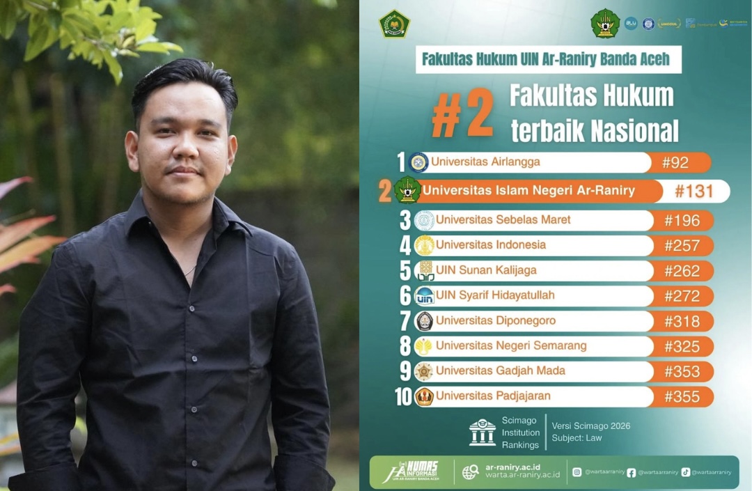 Berdasarkan hasil pemeringkatan tersebut, UIN Ar-Raniry bahkan mampu mengungguli sejumlah perguruan tinggi ternama di Indonesia seperti Universitas Indonesia, Universitas Gadjah Mada, dan Universitas Padjajaran dalam bidang hukum, yang selama ini dikenal sebagai kampus dengan reputasi kuat di bidang tersebut.