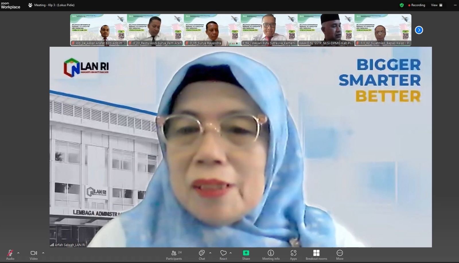 I Wayan Putu Sutresna, Kurniawan Wawondos, Sujatmiko, Surya Rayendra, dengan pembinaan dari Fasilitator Dra. Arfah Salwah, M.Si dari Pusat Pembelajaran dan Strategi Kebijakan Manajemen Kinerja Lembaga Administrasi Negara Republik Indonesia. []