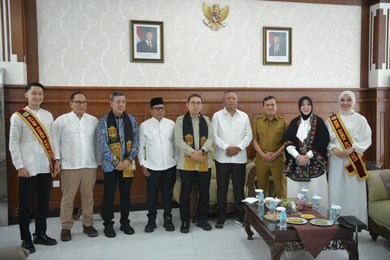 BERITA RAKYAT ACEH |Aceh Besar – Wakil Gubernur Aceh, H. Fadhlullah SE., bersama Wali Kota Banda Aceh, Hj. Illiza Saaduddin Djamal, menjemput kedatangan Menteri Kebudayaan Republik Indonesia, Fadli Zon, di Bandara Sultan Iskandar Muda (SIM), Senin 24 Desember 2025.